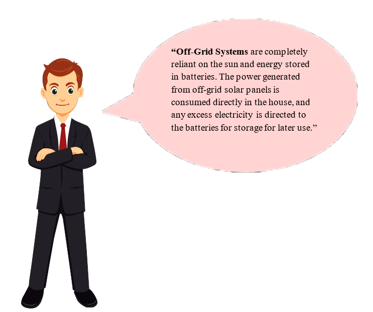 The Off-Grid Solar system is not connected to the utility grid. It consists of off-grid solar panels, a charge controller, a battery, mounting structures, and an off grid solar inverter. Off-Grid power systems capture sufficient sunlight during the daytime where the electricity generated is directly sent to the batteries for storage.